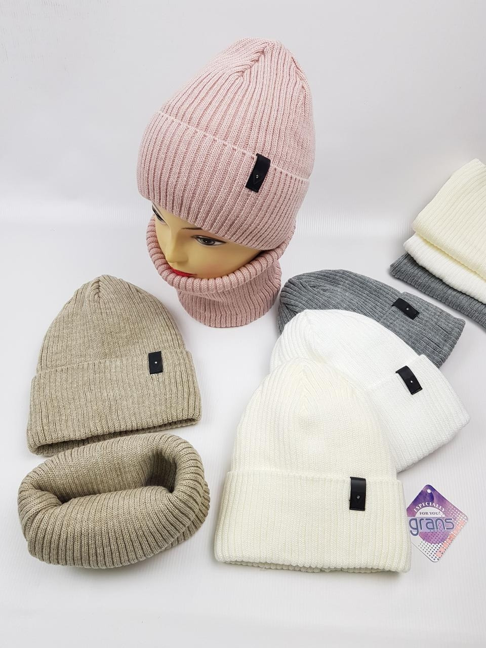 Підліткові в'язані шапки оптом на флісі для дівчаток, р. 54-56, Grans (Польща)